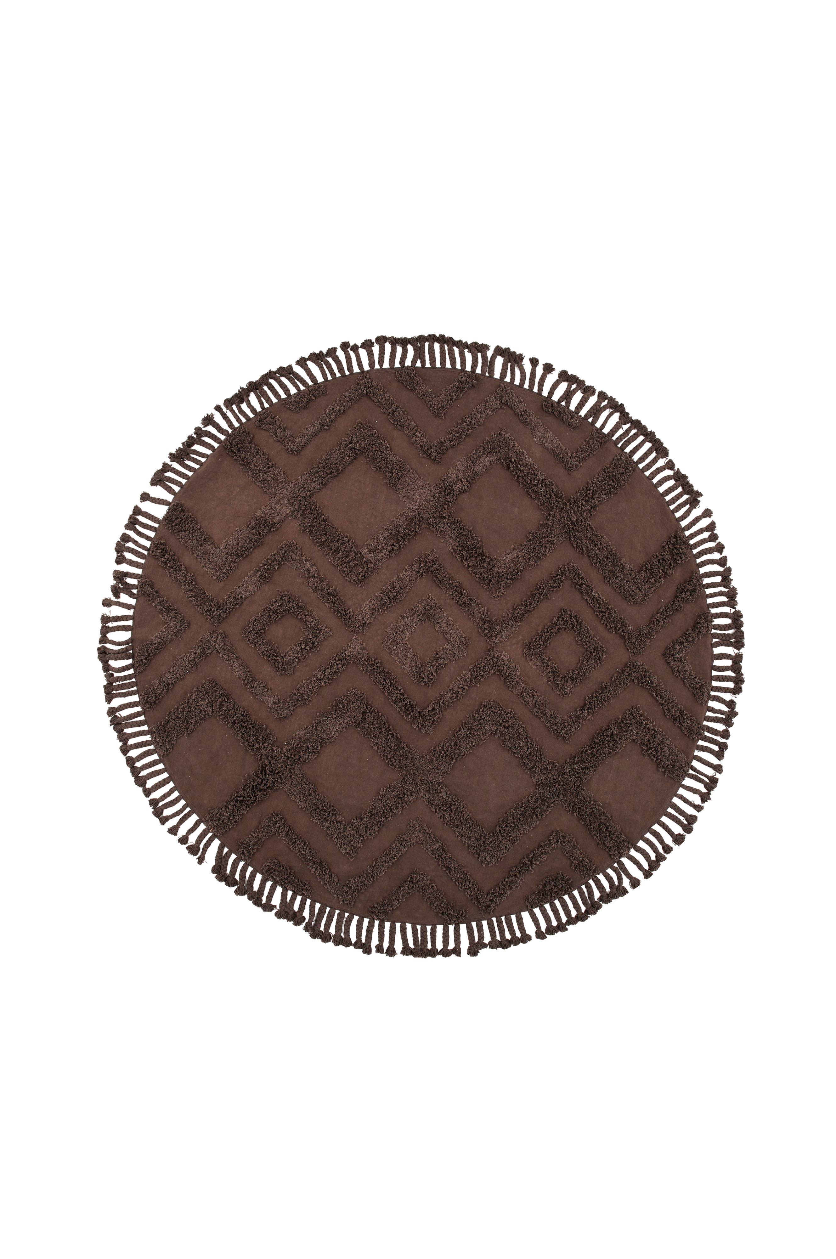 Det perfekte runde teppet til det moderne hjemmet! Teppeserien Hilma tilbyr slitesterke bomullstepper i ulike farger og størrelser for å best tilpasse seg ditt hjem og behov. Dette runde teppet i jordnære nyanse har tuftet mønster som gir en lekker tekstur og dimensjon til teppets utforming. De flettede frynsene rundt teppet medvirker til en klassisk look, og gir rommet en koselig følelse. Plasser det under sofabordet og kjenn hvordan varmen stiger i innredningen!