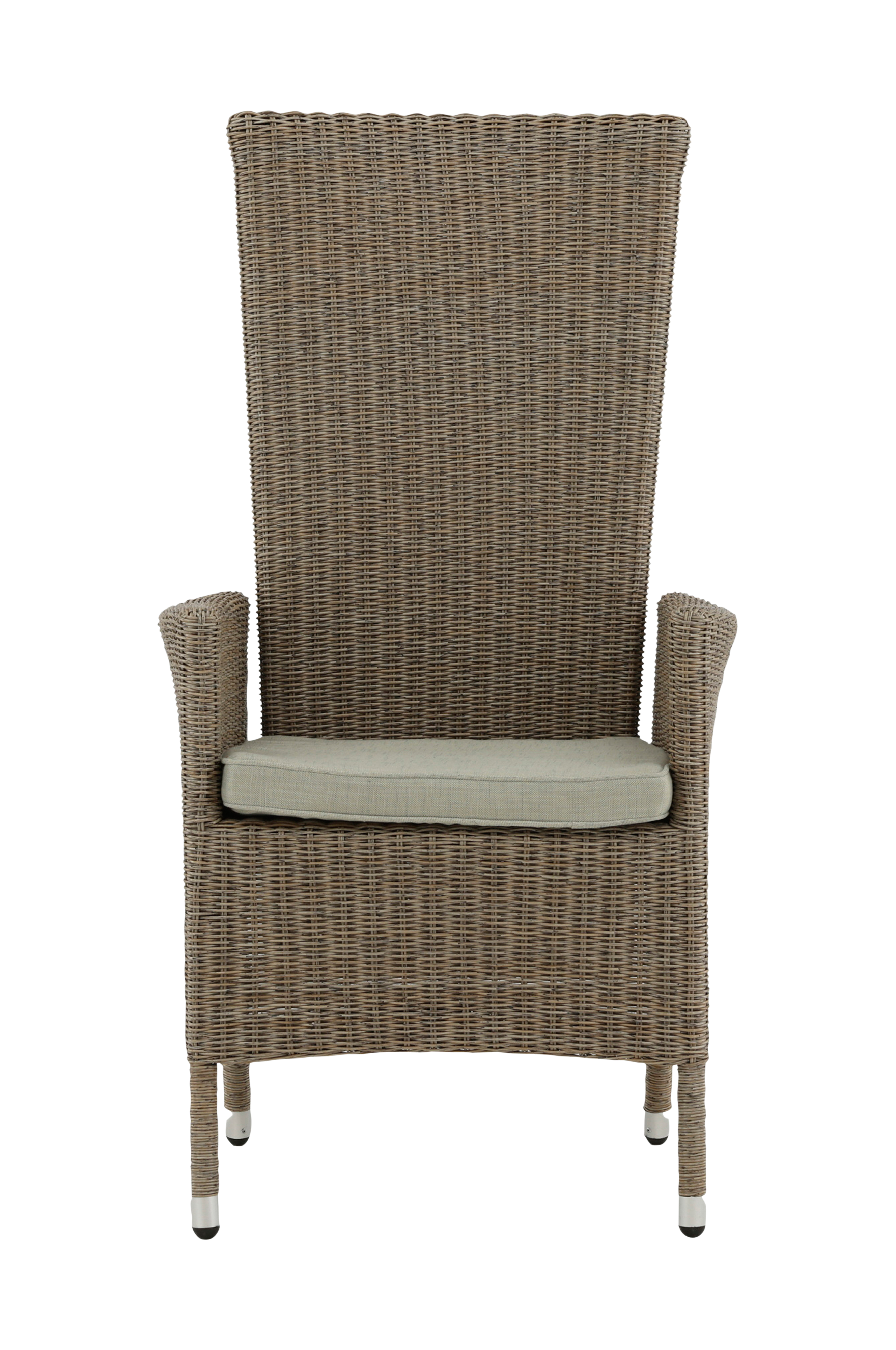 Toscana er en klassisk lys beige armstol med en noe høy, fellbar rygg. Stamme i aluminium og kunstrotting, to slitesterke materialer som tilbyr deg en robust spisestol som varer lenge. Sitt behagelig og luksuriøst rundt spisebordet i sommer og nyt koselige måltider utendørs.