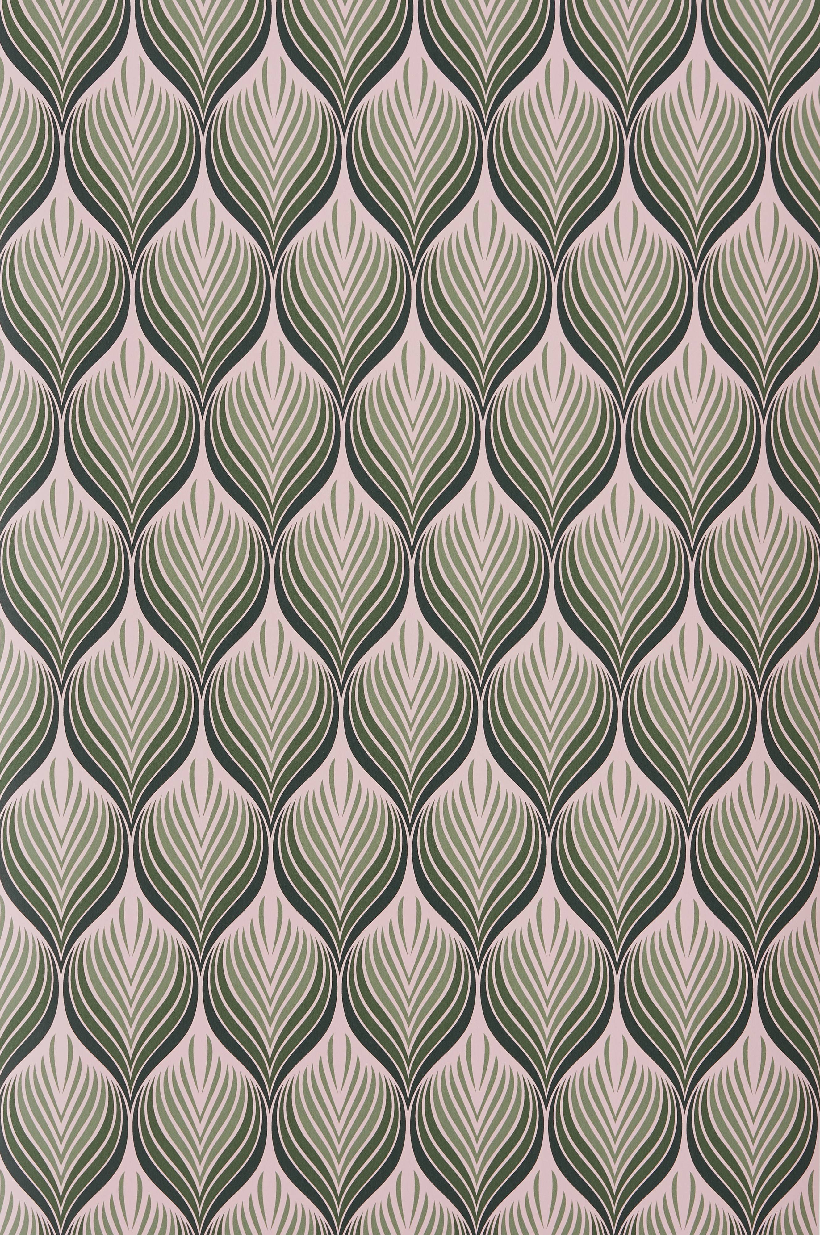 Tapetprøve til tapet Lilja, farge grønn/rosa.