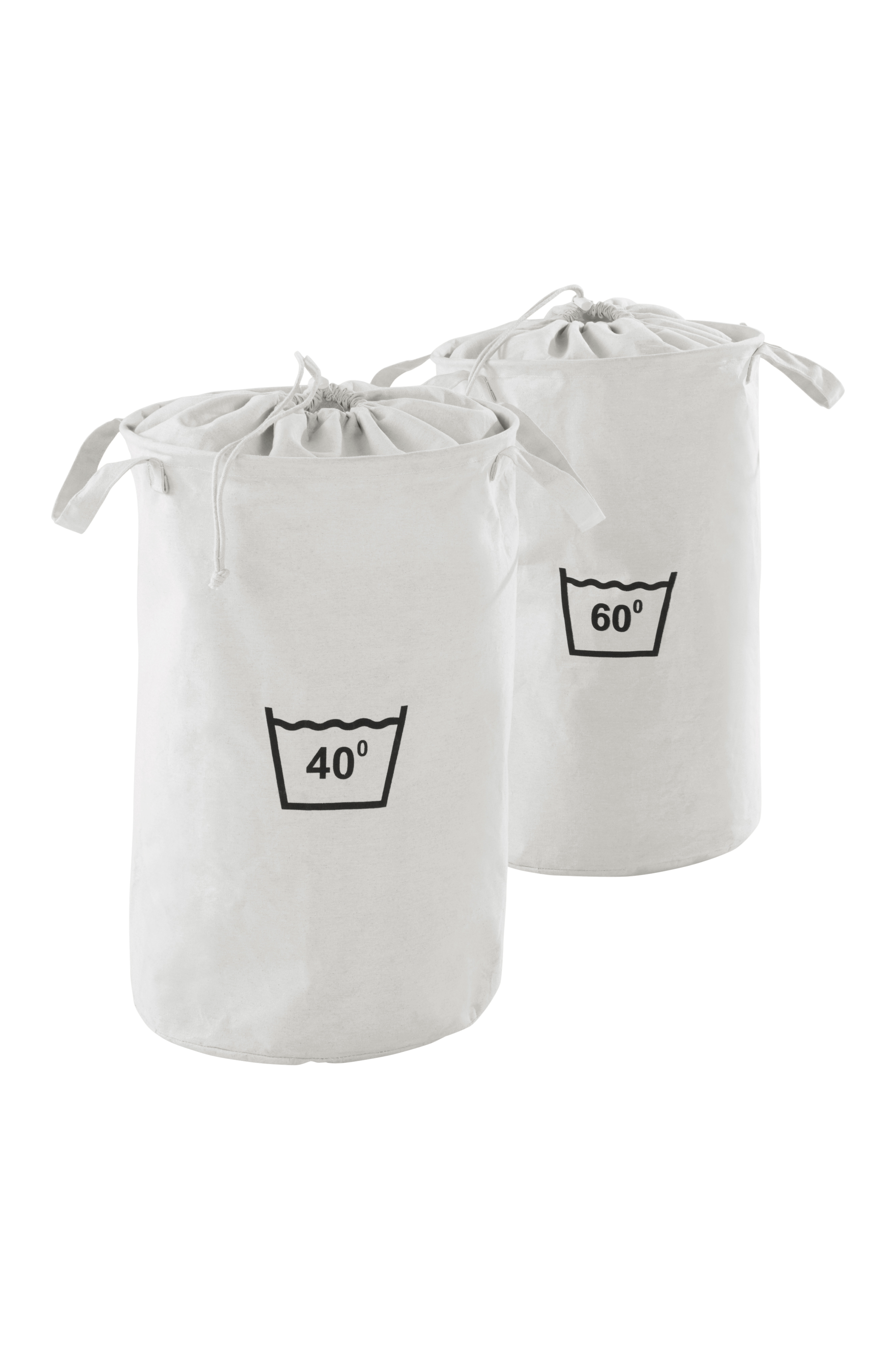 2-pk skittentøyskurver i vevd stoff av bomull, begge har robust innside, laminert med polypropylen. Begge skittentøyskurvene har ulike trykk, 40° og 60°, slik at du praktisk og enkelt kan sortere vask umiddelbart. Når du skal vaske er sorteringsarbeidet ferdig, og du bestemmer hvilken vask som står for tur. Skittentøykurvene er runde med to praktiske håndtak slik du kan bære dem til vaskerommet, også om det er et stykke å gå.