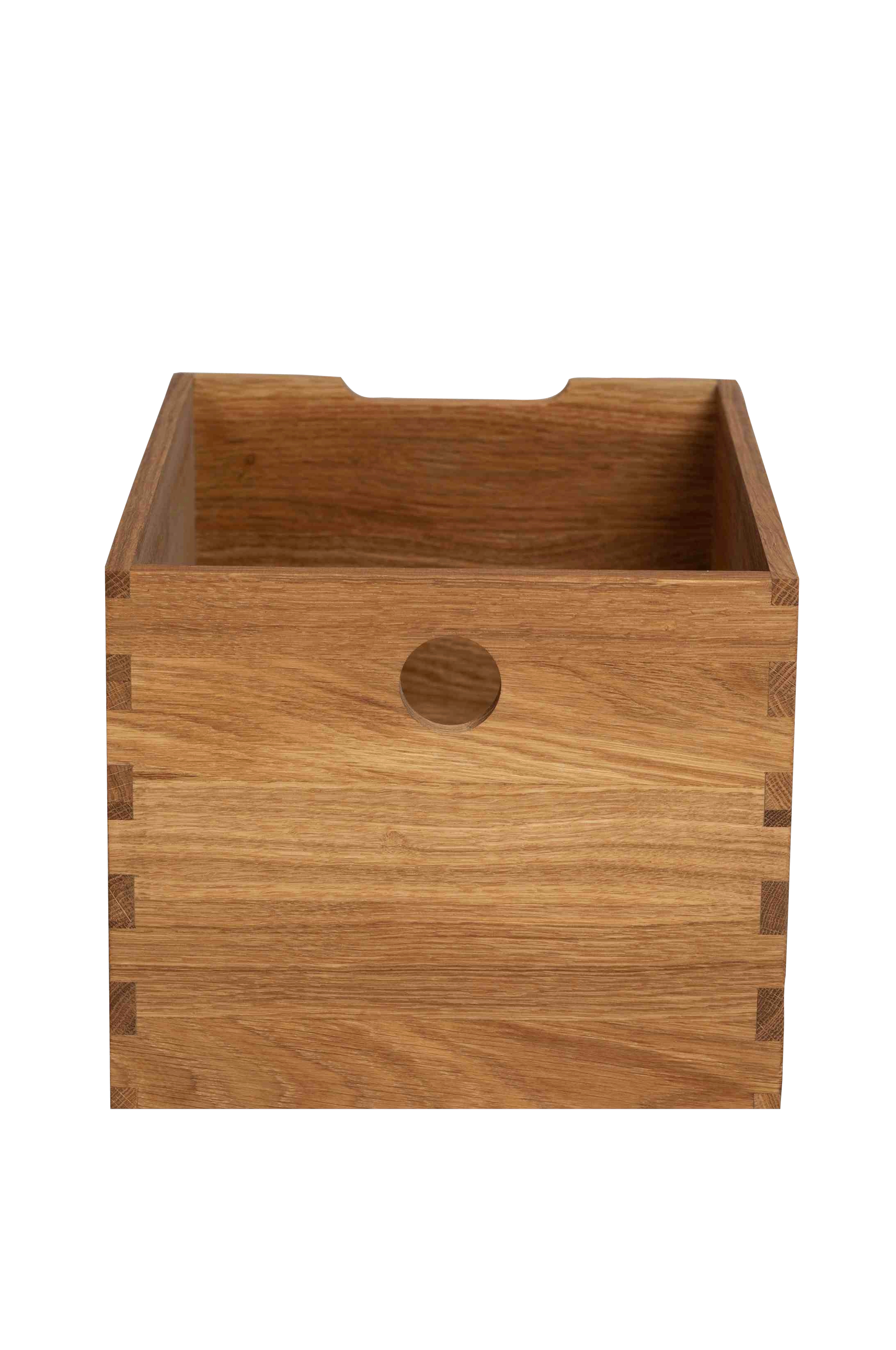 Den perfekte detaljen i ethvert rom. Oppbevaringsboks av naturlig, europeisk eik. Behandlet med olje i naturfarge. Mål: 22x31x18 cm