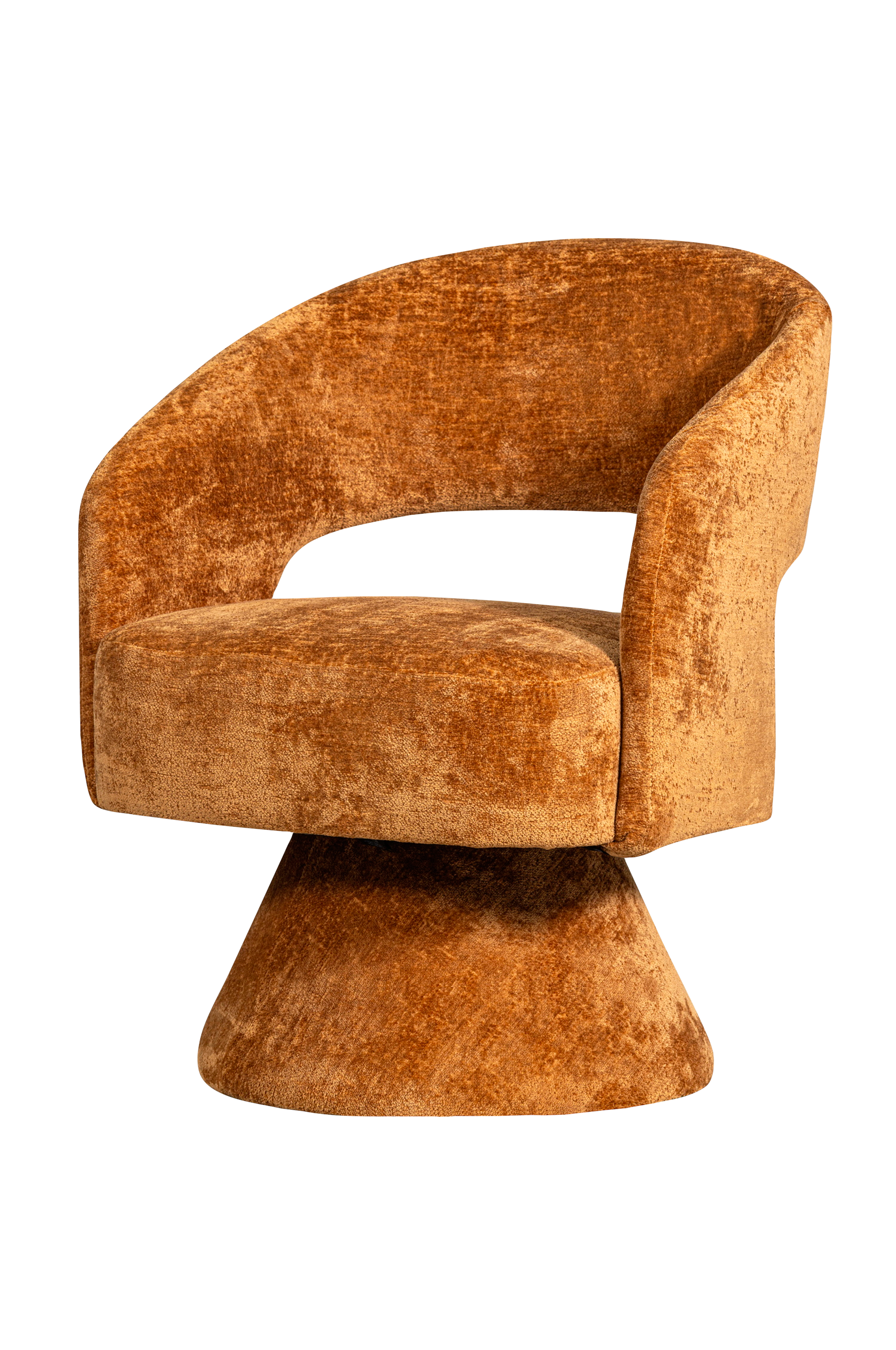 ebba svingbar lenestol fra kolleksjonen til det nederlandske merket woood har et elegant utseende og myke former. Ebbas sete, rygg og understell er trukket i et mykt chenillestoff. Ebba inviterer deg til å slappe av!