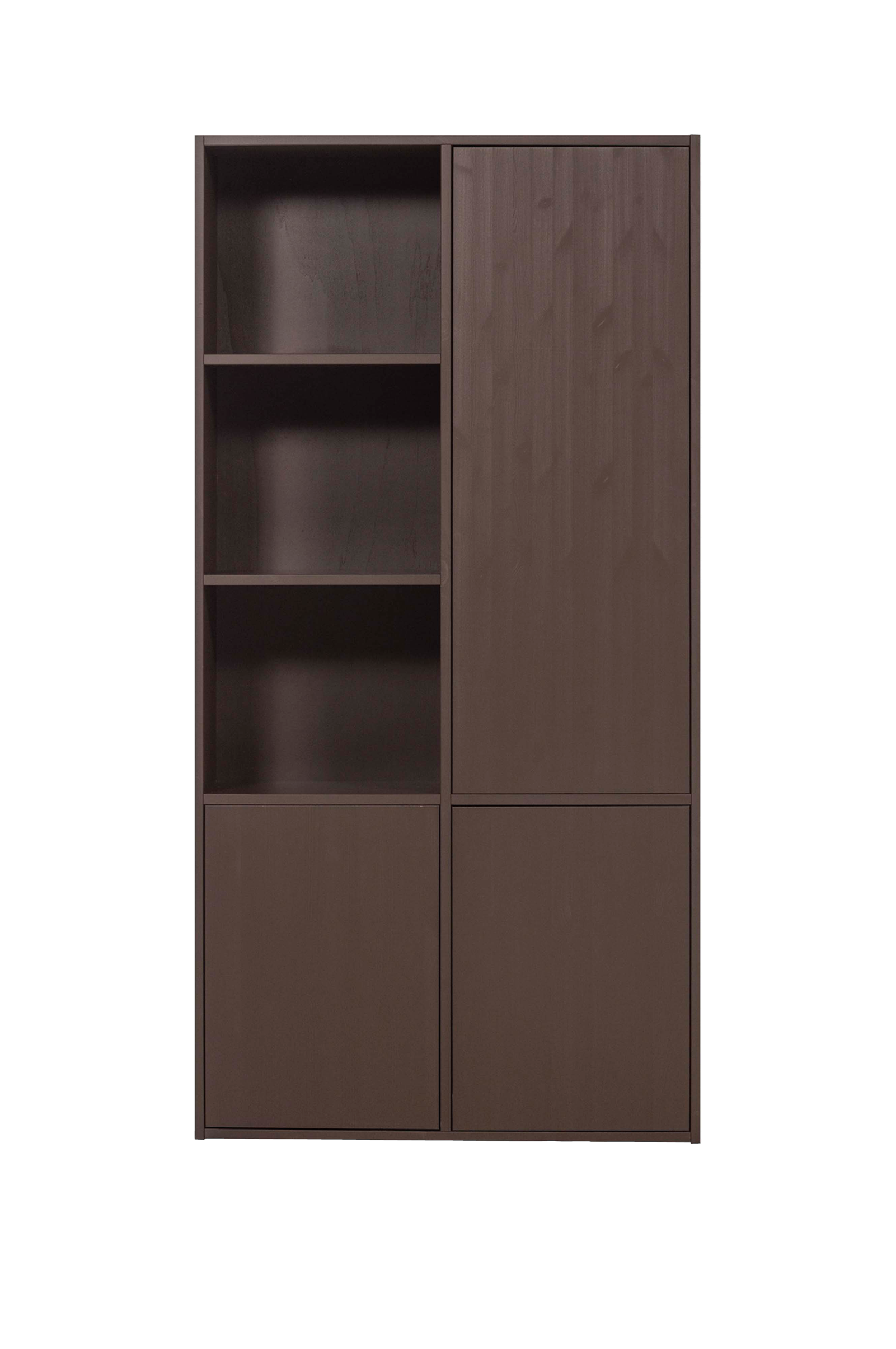 leter du etter et stilig oppbevaringsskap med push-to-open-system? Da bør du velge Maggy oppbevaringsskap i naturlig furu fra kolleksjonen til det nederlandske interiørmerket Woood. Dette stilige skapet tilbyr en praktisk og dekorativ oppbevaringsløsning. På venstre side er det to åpne rom, ideelt for å vise frem favoritttilbehør, bøker eller pyntegjenstander. På høyre side er det et langt skap med dør, der du enkelt kan oppbevare ting ute av syne. Perfekt for deg som liker å skape et ryddig, stilig og personlig interiør.