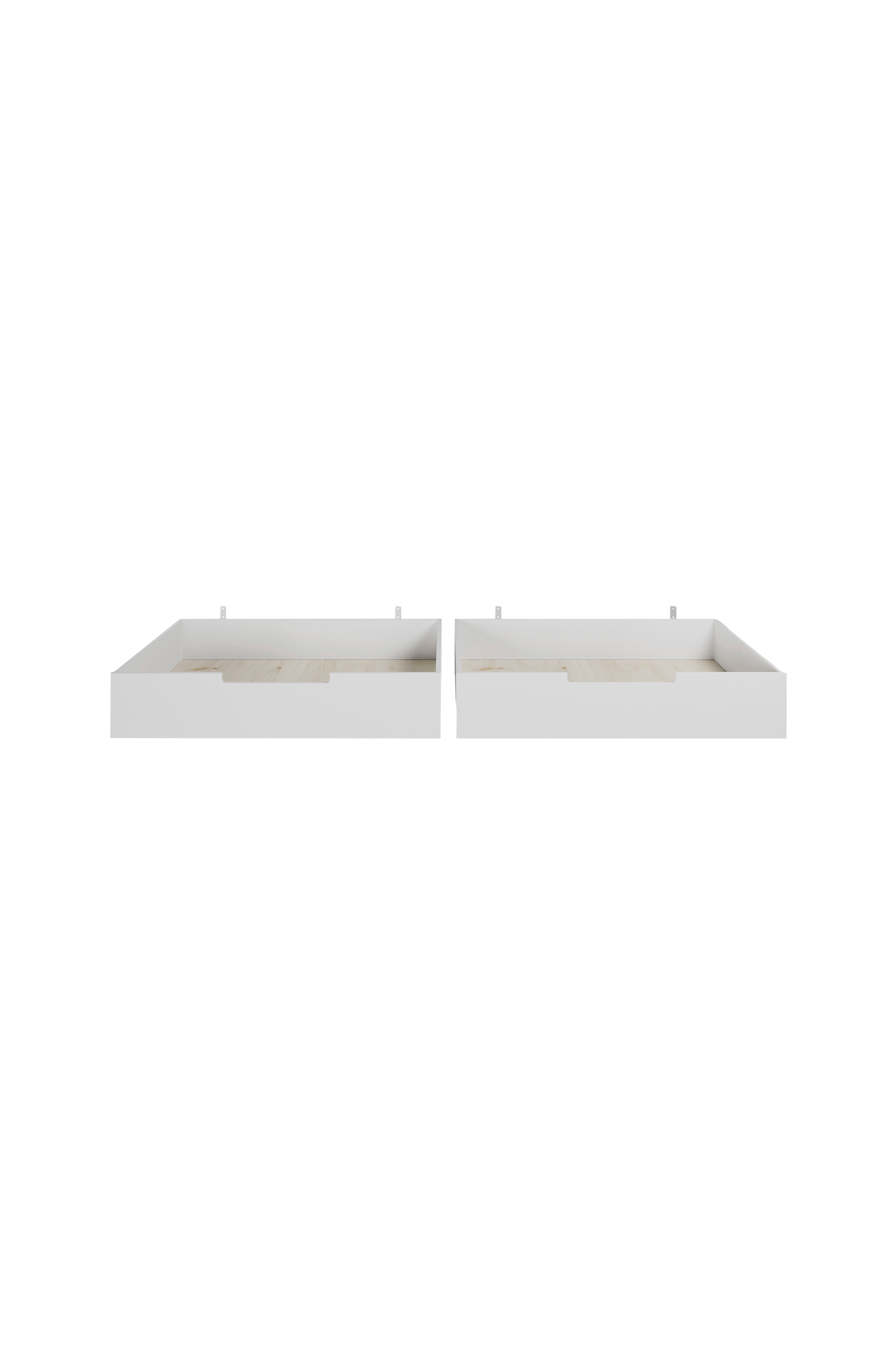 Hva er vel smartere på et barnerom enn oppbevaringsskuffer under sengen? Dette settet er en utmerket løsning for mindre flater fordi skuffene gir mye lagringsplass. Begge skuffene har hjul slik at de glir lett inn og ut. Skuffene leveres som et byggesett med tydelige monteringsanvisninger.