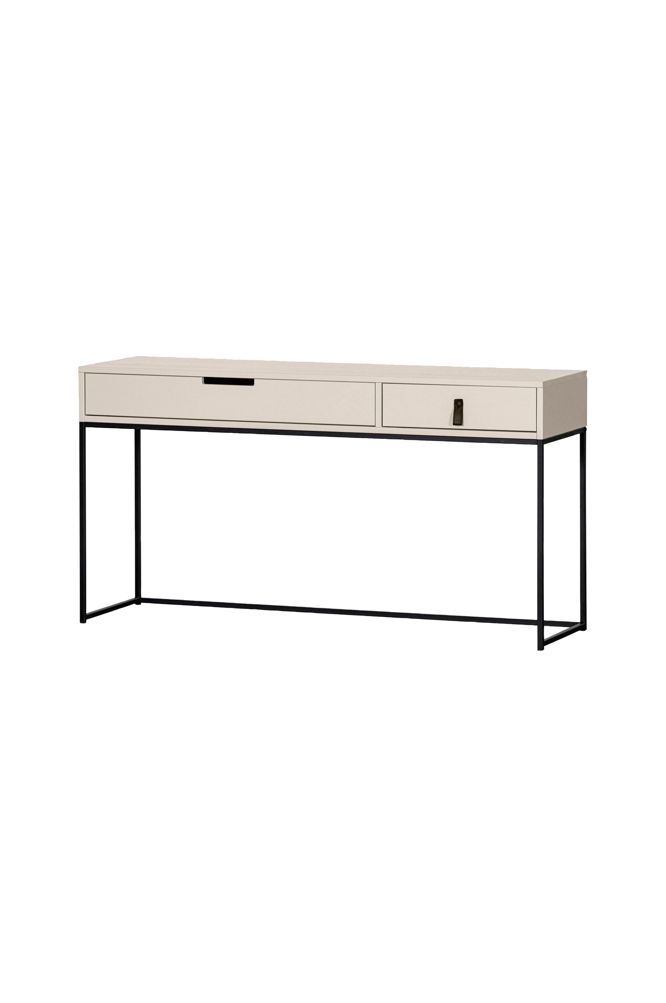 Silas Sidebord har bordplate i ask (16 cm) med en børstet overflate som er lakkert. Siden har 2 skuffer. 1 bred skuff med en utskjæring som håndtak, og 1 smal skuff med skinnhåndtak. Rammen er produsert i metall med farge. Rammen har en tykkelse på 15 mm. Silas sidebord er 74 cm høyt, 140 cm bredt og 40,1 cm dypt.