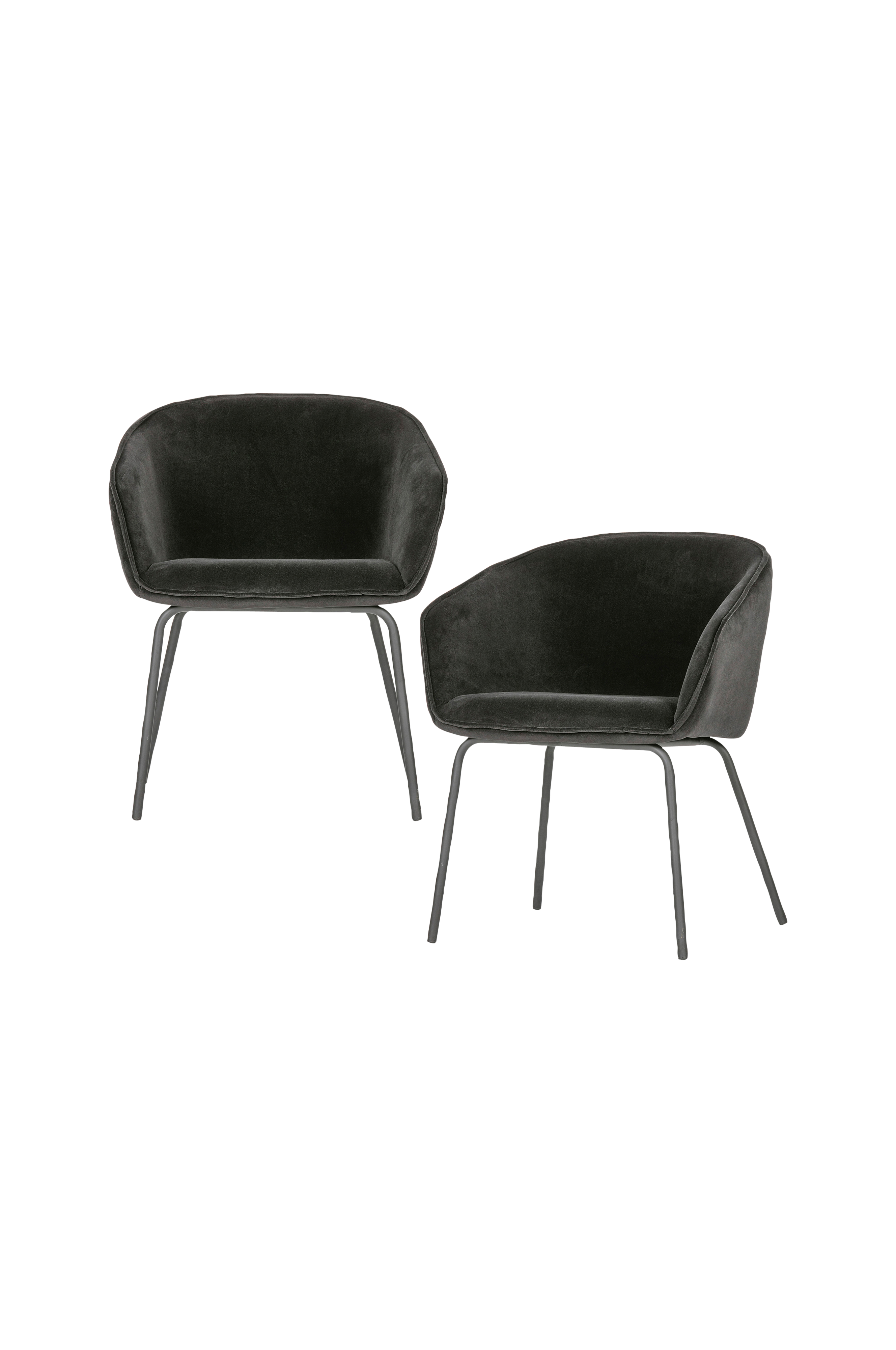 Spisestol Sien - Sett med 2 - tilhører kolleksjonen til det nederlandske merket WOOOD. Stolen er kledd med et vevd stoff i 100% polyester. Martindale 100 000. Stoffsetet har glidelås på baksiden. Stålbena (hxd) 39 cm x 2 cm, har matt pulverbehandling.