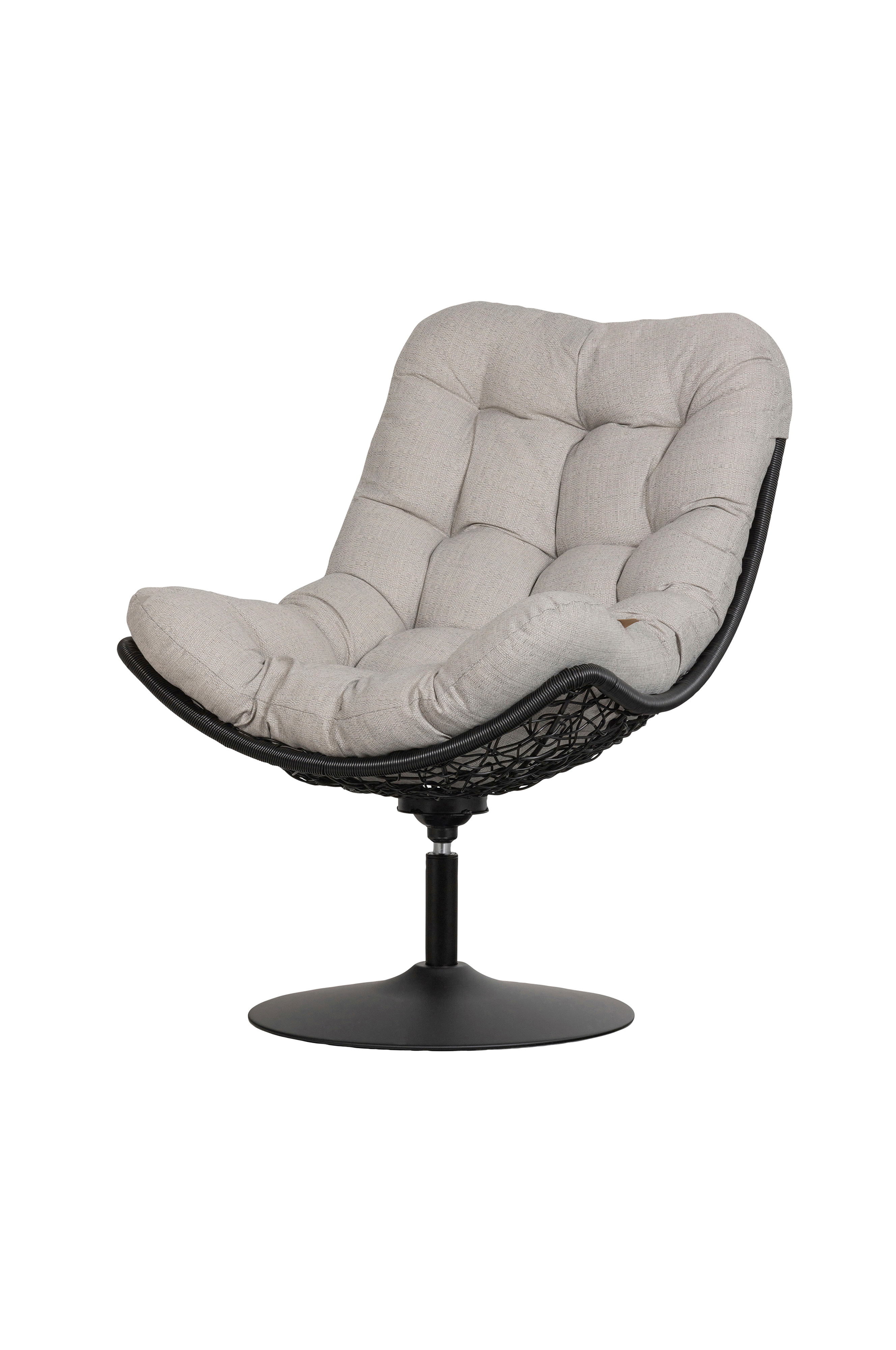 Leter du etter perfekte loungemøbler for sommeren? Da er Vive utestol med snurrefunksjon det beste valget! Vive inngår i WOOODs utendørskolleksjon, og er produsert av svartfarget kunstrotting med en elegant, mattsvart snurrefot. Stor sittepute følger med.