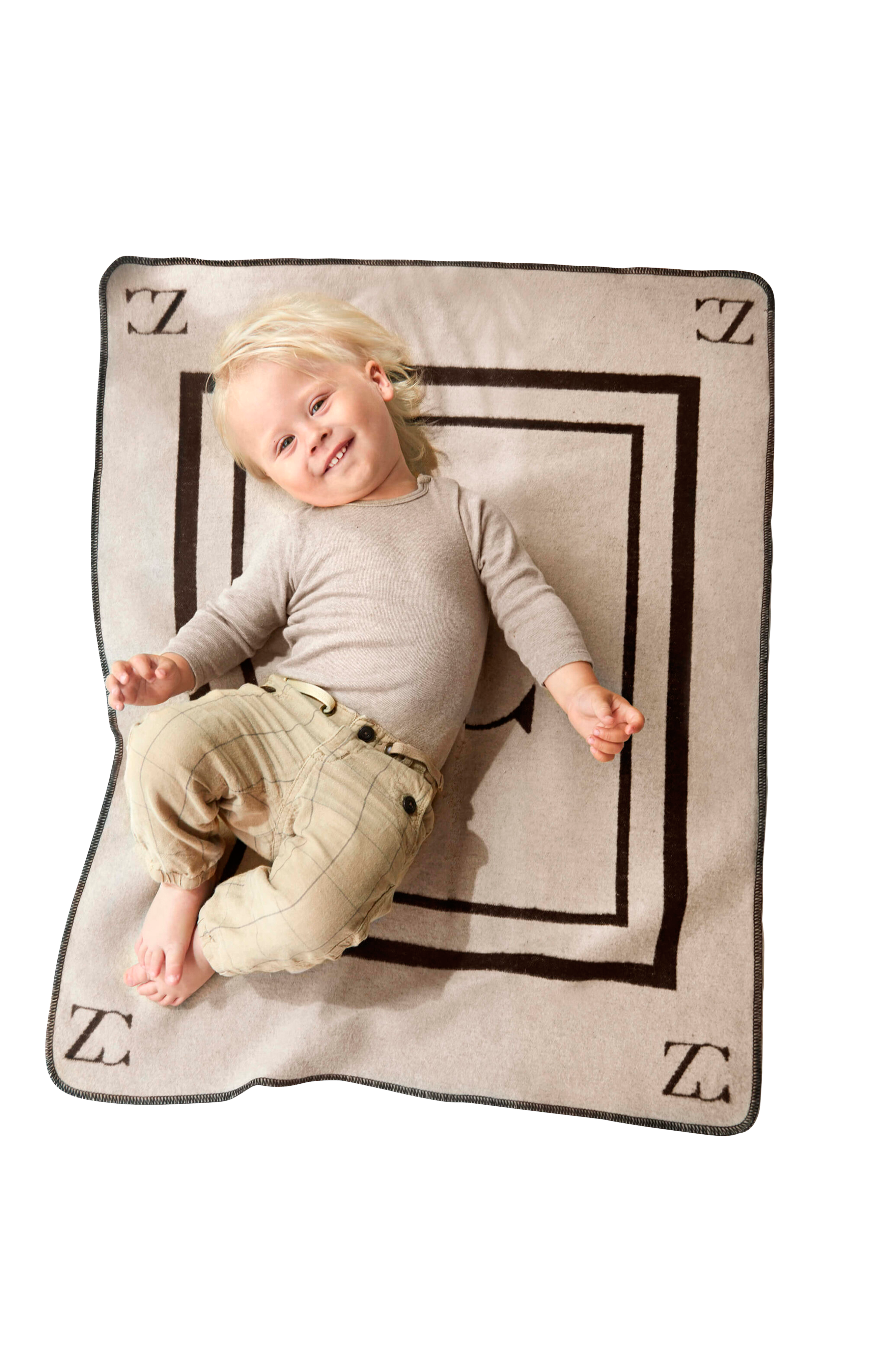 Pledd til baby eller hund i en eksklusiv bomullsblanding, vevd i Østerrike. Supermyk toppkvalitet! Dobbeltsidig svart på den ene siden og beige på den andre. Kan brettes på flere ulike måter slik at det dannes ulike mønstre. 70x90 cm.