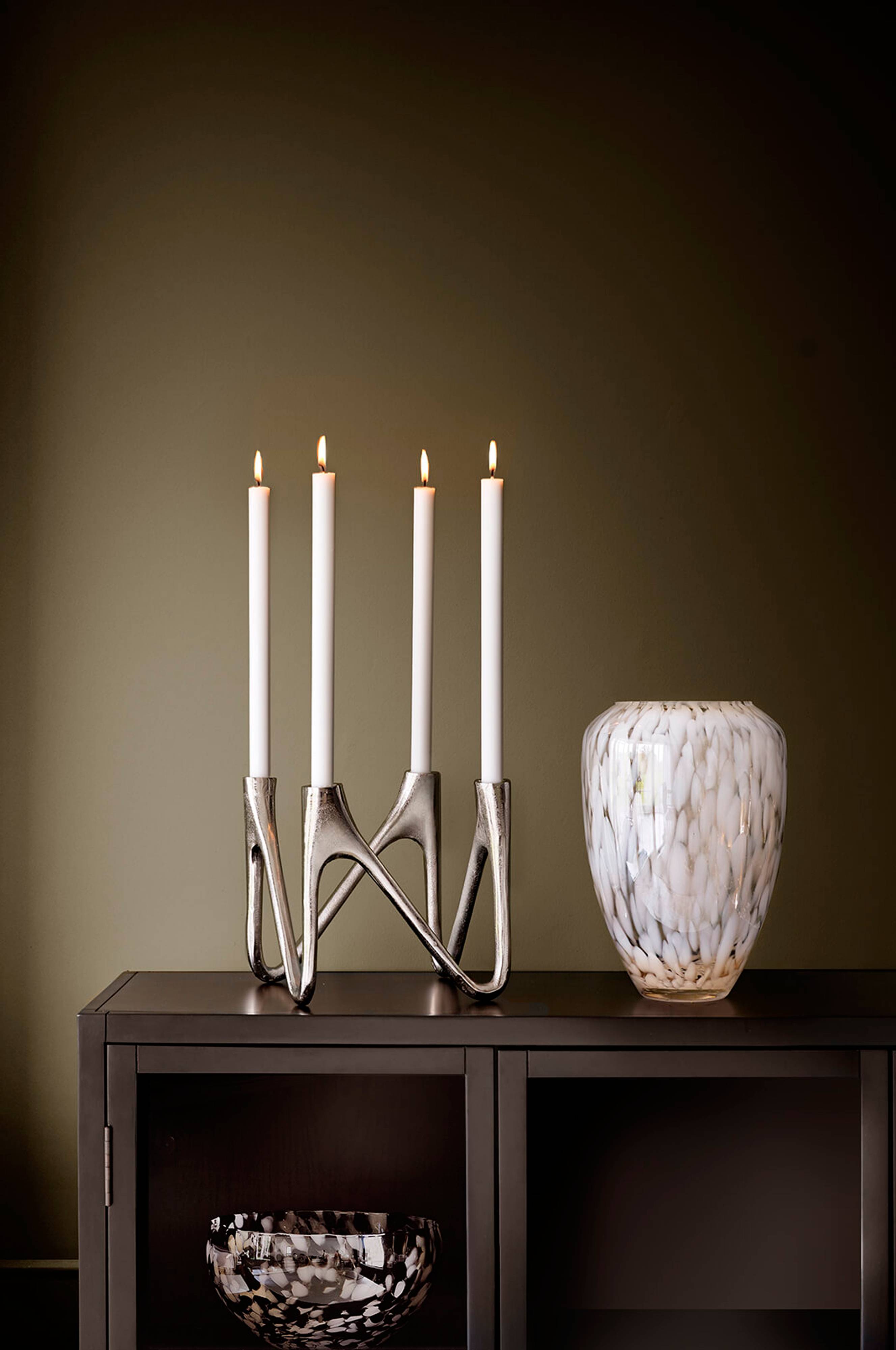Elegant kandelaber i rå aluminium med matt finish.