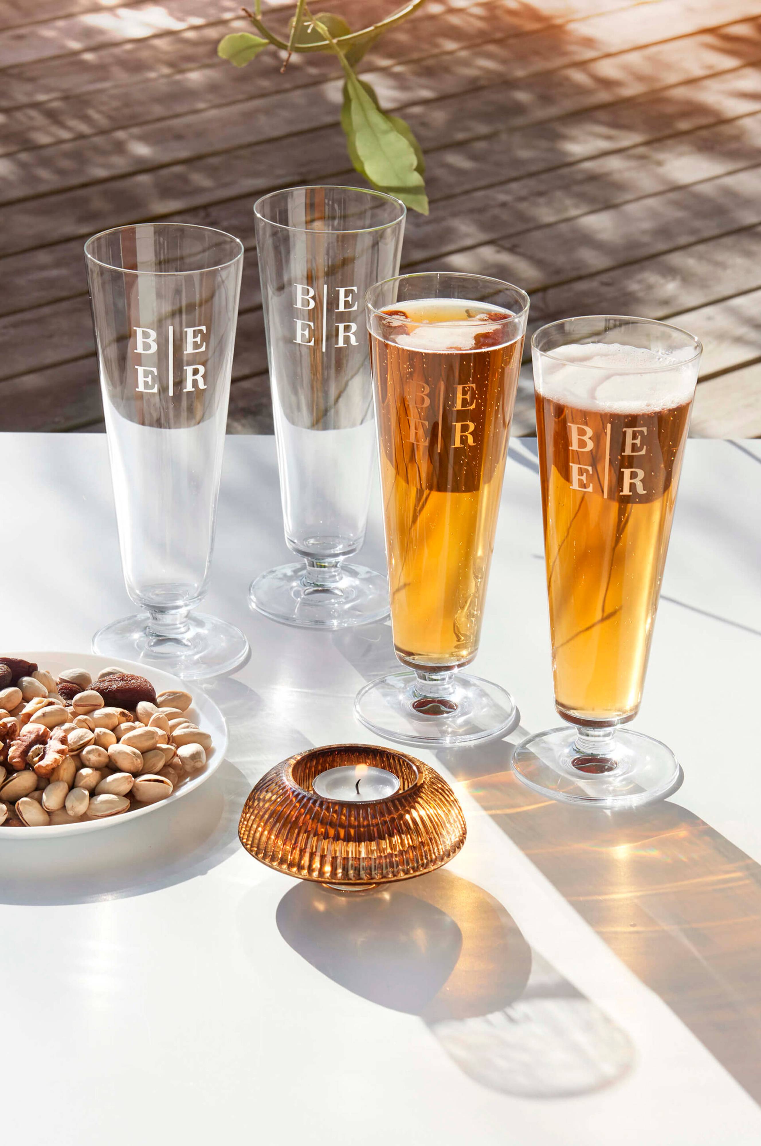 4-pakning supertynne ølglass med teksten «BEER» inngravert. Kan vaskes i oppvaskmaskin. Rommer 420 ml.