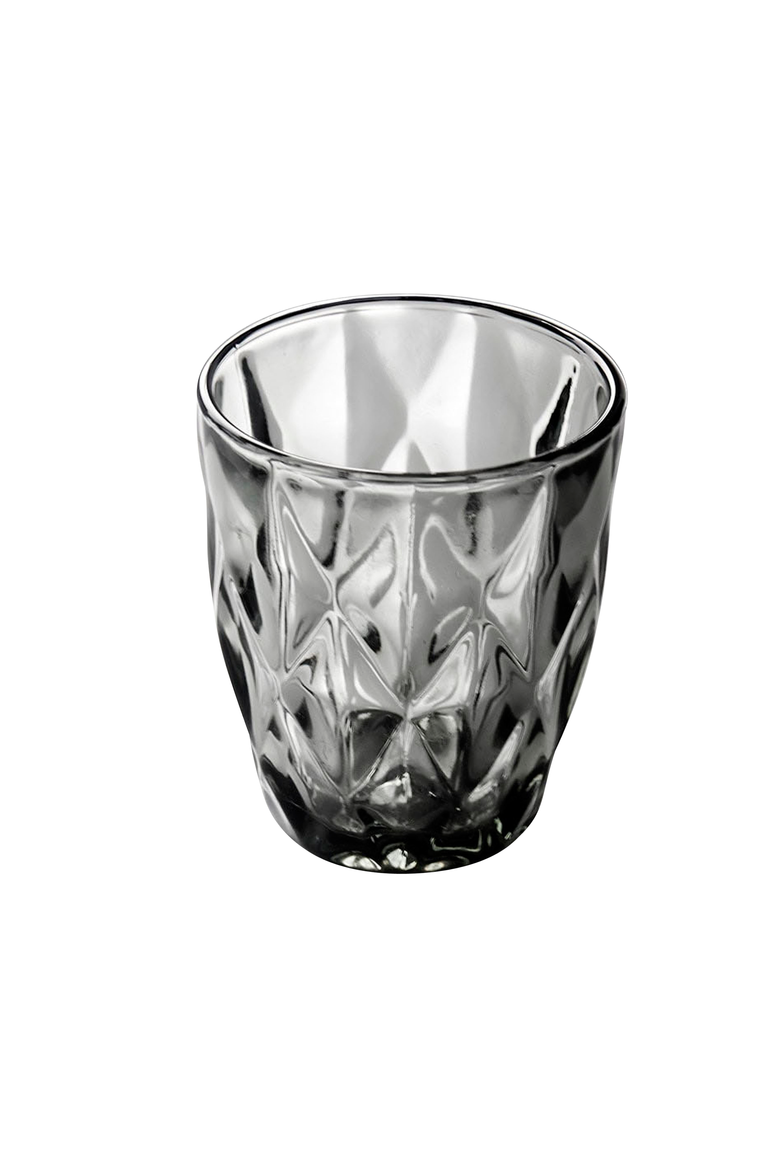 Rutemønstret drinkglass fremstilt i glass, luksuriøst å drikke av. Serien inneholder også high ball-glass og dessertskål. Høyde 10 cm.