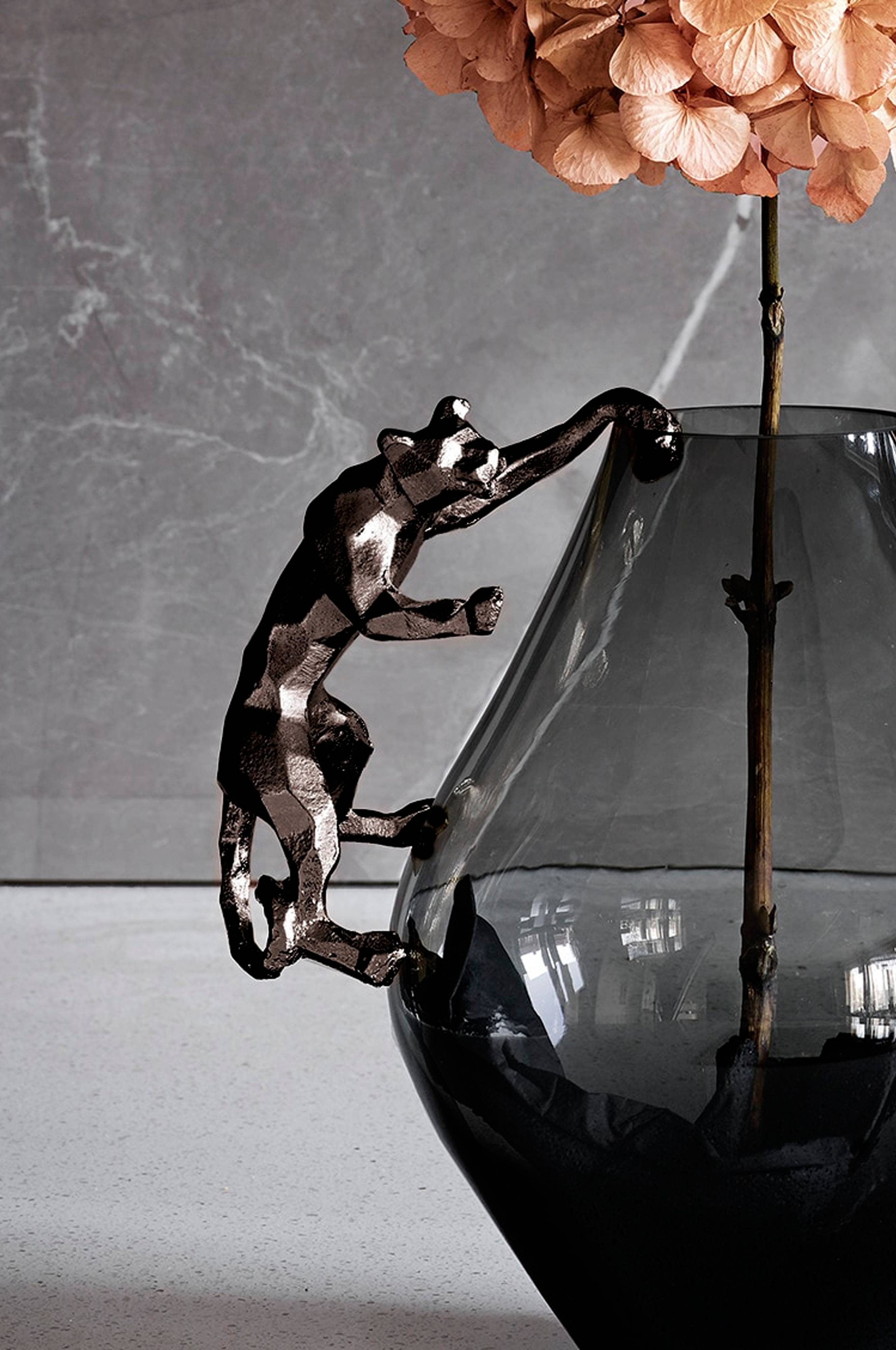Jaguarformet dekor i aluminium for alle typer potter og vaser. Høyde 7 cm, lengde 18 cm, bredde 7 cm.
